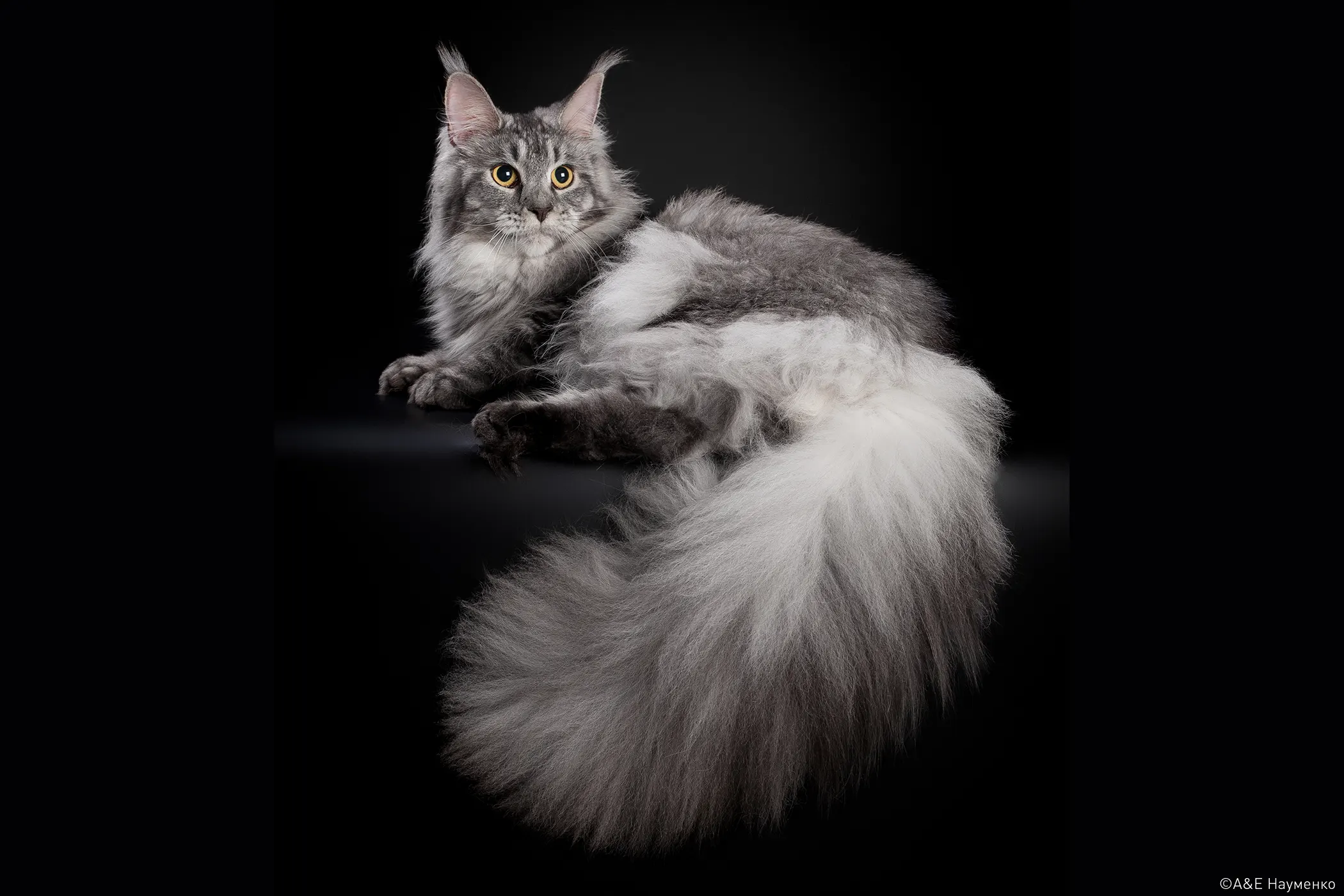 Мейн-кун — это большая, величественная кошка с пронзительным взглядом и кисточками на ушах, напоминающими рысьи. Название происходит от штата Мэн (Maine) и слова «енот» (raccoon) — по легенде именно от енотов берет свое начало данная порода. Несмотря на внушительные размеры, это ласковые и игривые «гиганты» с устойчивой нервной системой.
