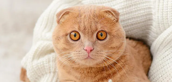 Шотландские кошки унаследовали черты британцев, включая крупные округлые глаза. Вислоухие (скоттиш-фолд) и прямоухие (скоттиш-страйт) варианты породы отличаются только формой ушей. Глаза у них посажены широко, имеют округлую форму и часто окрашены в янтарные или медные оттенки. Выразительный взгляд в сочетании с компактной мордочкой придает «шотландцам» особый шарм.