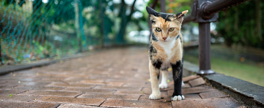Зараженная бешенством кошка представляет опасность для животных и людей в контакте.