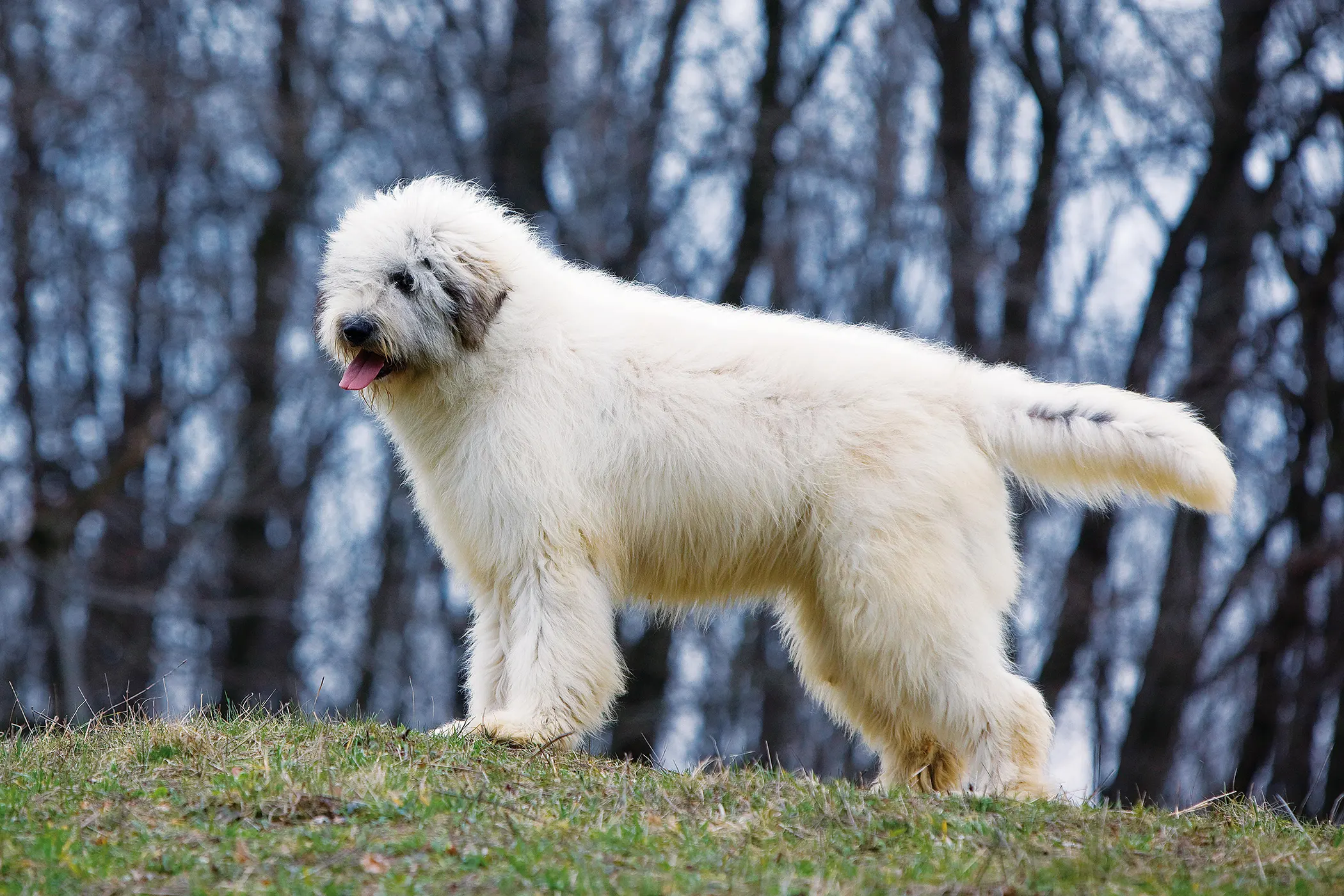 Особенности экстерьера: крупная, мощная, внушительная собака, одетая густой довольно длинной шерстью, с пышным «плюмажем» на хвосте. Типичные окрасы ― белый, серый, белый с цветными пятнами.